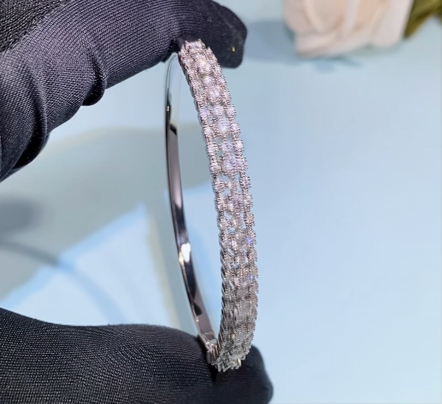 This exquisite bracelet is meticulously crafted with high-quality 925 sterling silver, renowned for its durability and lustrous sheen. The silver base is then expertly plated with PT950 gold, adding a touch of luxury and elegance. The bracelet is lavishly adorned with moissanite stones that are carefully selected for their exceptional brilliance and fire. Each stone is precisely set, creating a mesmerizing starry sky design that is both captivating and enchanting.