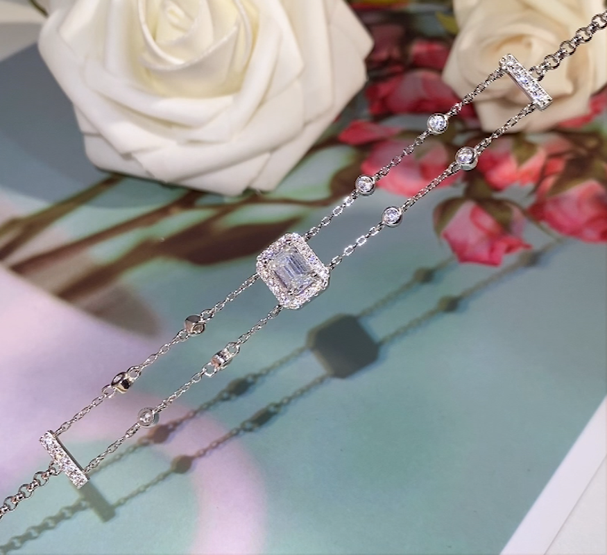 The bracelet offers a diverse range of stunning options. You can choose from 1 carat white moissanite in emerald cut or radiant cut, 1 carat blue moissanite, or 5*7mm rectangular chamfered cubic zirconia in either emerald cut or radiant cut. With such a variety of choices, there is a perfect match for every style and occasion.